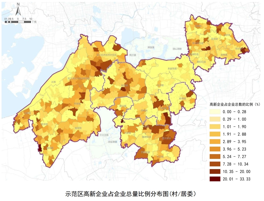“减量”之后,如何发展?示范区给出答案:以“好风景”促进“新经济”。2024年,示范区高新技术企业总数达到3606750家,较规划基期年增加1520664家;研究与试验发展(R&D)投入强度达到4.16%,较规划基期年提高0.56个百分点,高于沪苏浙平均水平,领先全国平均水平;专利授权量2.14万件,较规划基期年增长45%。